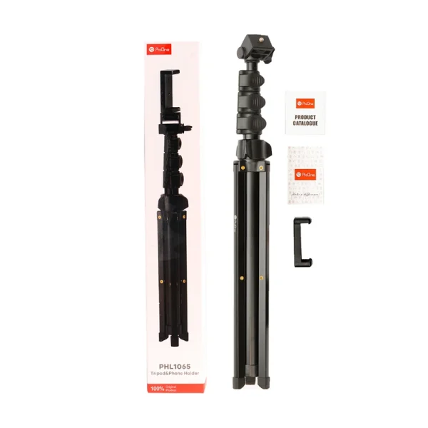 سه پایه موبایل و دوربین مدل PHL 1065یکی از محصولات شرکت «Proone» است. این محصول دارای کالایی با کیفیت بالا است که میتوان برای تولید محتوا ویدئویی، عکاسی و تصویربرداری از آن استفاده کرد. سه پایه پرووان دارای پایههای قابل انعطاف همراه با زیره پلاستیکی شیاردار برای جلوگیری از لیز خوردن روی سطوح مسطح قرار گرفته است. این ابزار جانبی دارای یک هولدر نگهدارنده قابل تنظیم برای موبایل و دوربینهایی با وزن کمتر از 2 کیلوگرم است. جنس قسمت بالایی این محصول از پلاستیک ABS و پایههای آن از جنس آلومینیوم میباشد. یکی از قابلیتهای این سه پایه چرخش به صورت 360 درجه است که کار با این محصول را لذت بخشتر کرده است. طول این محصول در حالت جمع شده 51 سانتیمتر، حداقل ارتفاع 60 سانتیمتر و حداکثر ارتفاع 169 سانتی متر میباشد.{در خدری تل}