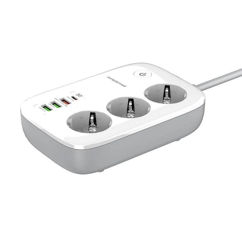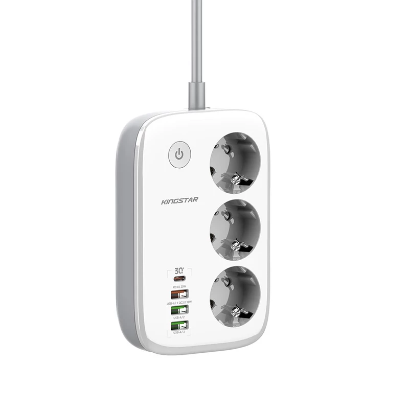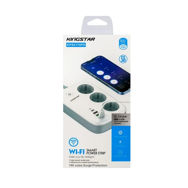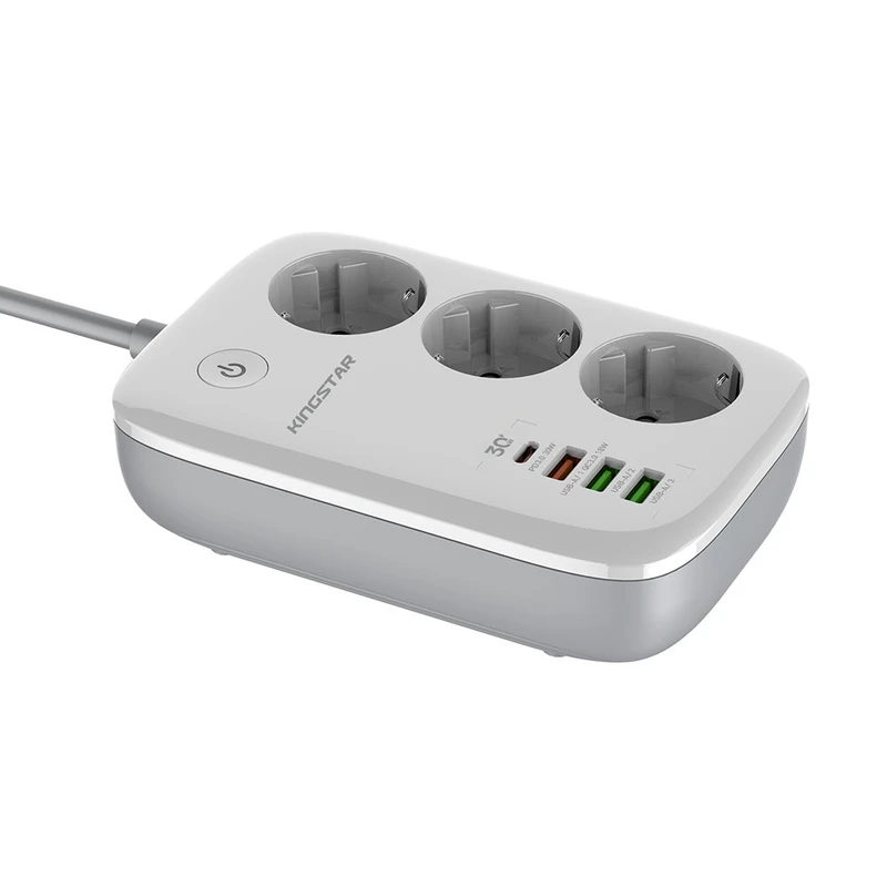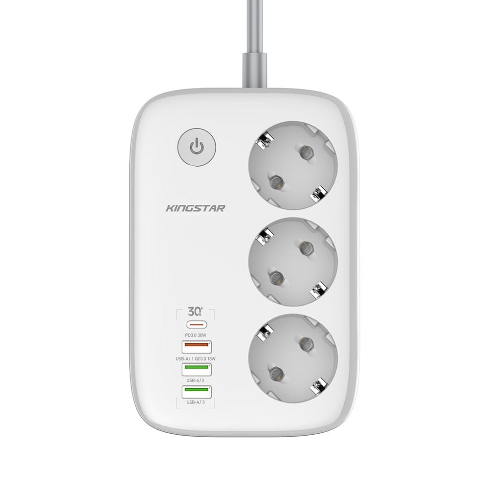 چند راهی‌ برق کینگ استار مدل KPS 5170 در ابعاد 155x105x40 میلی‌متر و وزن 440 گرم قادر است خروجی یک پریز برق شهری را به 3 پریز برق، 3 پورت USB و یک پورت تایپ سی (Type-C) تبدیل کند. همانطور که اشاره شد چند راهی برق کینگ استار مدل KPS5170PD به 3 پورت USB و 1 پورت تایپ سی مجهز شده ‌است که به کمک آن‌ها می‌توان با اتصال انواع سیم شارژ یا شارژر، دستگاه‌های دیجیتال و موبایل را به‌ سادگی شارژ کرد. این پورت‌ها که از فناوری‌های QC3.0 و PD3.0 پشتیبانی می‌کنند، دارای نرخ جریان ولتاژ زیر هستند: USB-A: 5V/2.4A USB-A: 5V/3A , 9V/2A – 12V/1.5A (18W Max – QC3.0) USB-C: 5V/3A , 9V/3A – 12V/2.5A – 15V/2A – 20V/1.5A (30W Max – PD3.0) همچنین سه پریز یونیورسال (سه شاخه) نیز دارای شدت‌ جریان خروجی 10 آمپر و حداکثر توان خروجی 2500 وات خواهد بود.
