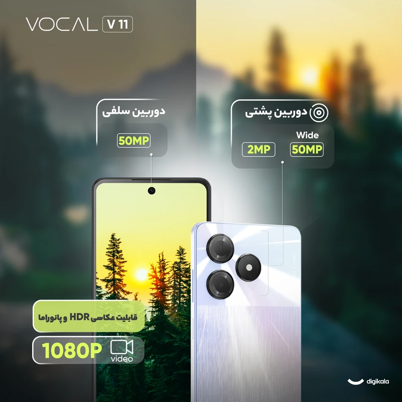 برند وکال که تخصص ویژهای در زمینه گوشیهای اقتصادی پیدا کرده است، به تازگی Vocal V11 را معرفی کرده است. این گوشی با ترکیب مناسبی از طراحی زیبا، مشخصات کاربردی و قیمت مناسب، توانسته به فروش خوبی دست پیدا کند. این گوشی با وزنی سبک و بدنهای از جنس شیشه، رزین و پلاستیک، تجربهای خوبی در استفاده روزمره به کاربران منتقل میکند. صفحهنمایش 6.56 اینچی LCD با نرخ تازهسازی90 هرتز و رزولوشن720×1612 پیکسل، برای تماشای محتواهای چندرسانهای و بازیهای سبک گزینهای مناسب است. از طرفی محافظ صفحه Corning Gorilla Glass مقاومت خوبی در برابر خط و خش فراهم میکند. در بخش پردازنده، Vocal V11 از تراشه اقتصادی Unisoc T606 با هشت هسته و پردازنده گرافیکی Mali-G57 استفاده میکند که عملکرد قابل قبولی برای کارهای روزمره و سبک دارد. حافظه داخلی 128 گیگابایت و رم 4 گیگابایتی، همراه با قابلیت استفاده از کارت حافظه، فضای کافی برای ذخیرهسازی دادهها فراهم میکند. دوربین اصلی دوگانه با رزولوشن 50 و 2 مگاپیکسل و دوربین سلفی 50 مگاپیکسلی، عملکردی فراتر از انتظار در عکاسی و فیلمبرداری دارد. باتری 5000 میلیآمپر ساعت نیز همراه با پشتیبانی از شارژ سریع، طول عمر مناسبی ارائه میدهد. در مجموعVocal V11 گزینهای ایدهآل برای کاربرانی است که به دنبال کیفیت در یک گوشی اقتصادی هستند.